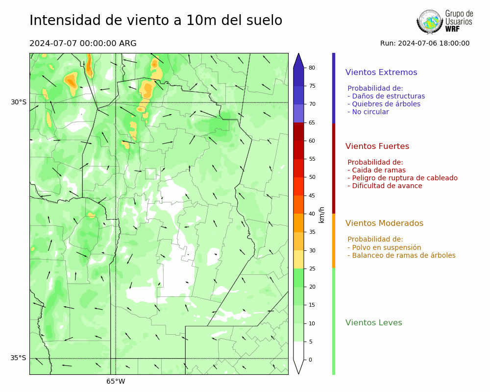• Intensidad máxima: 14.29 km/h (07/07/2024 01hs.)