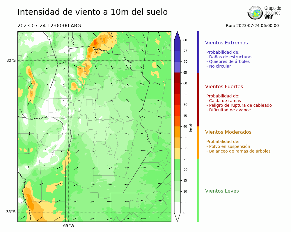 • Intensidad máxima: 15.60 km/h (24/07/2023 22hs.)