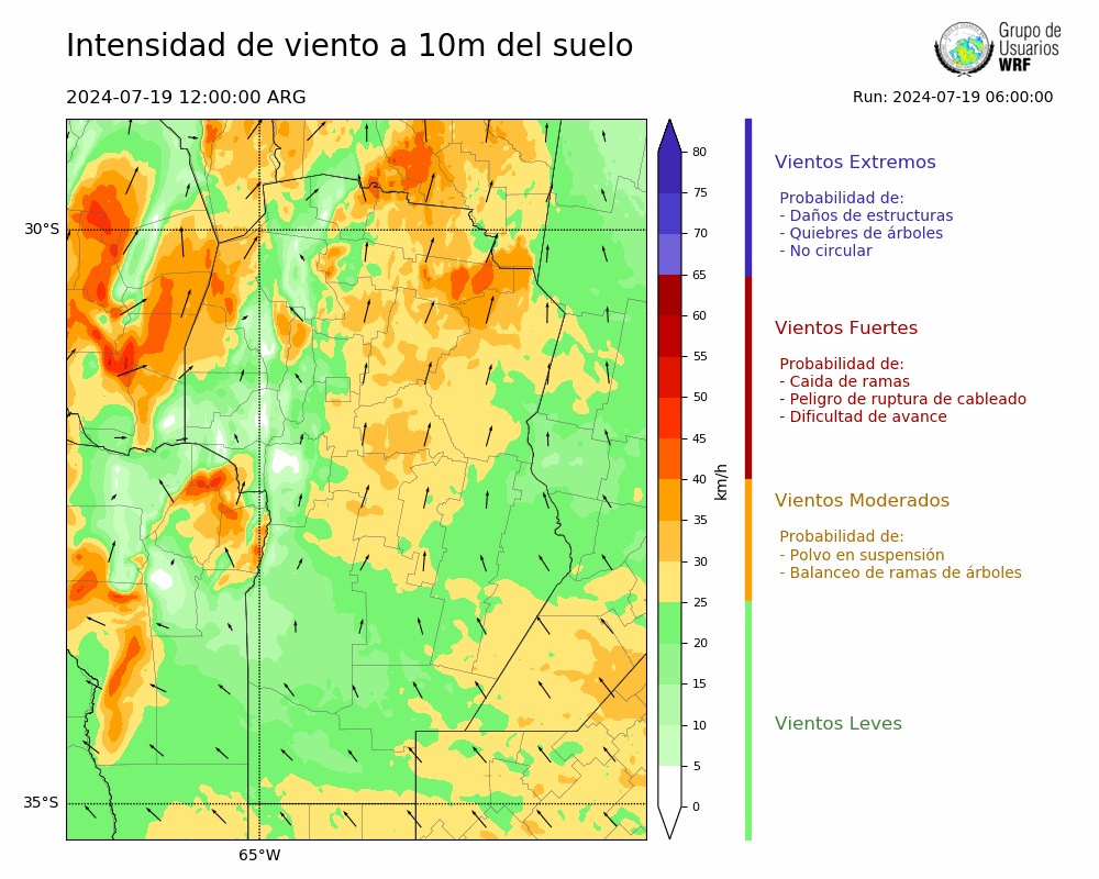 • Intensidad máxima: 30.78 km/h (19/07/2024 12hs.)