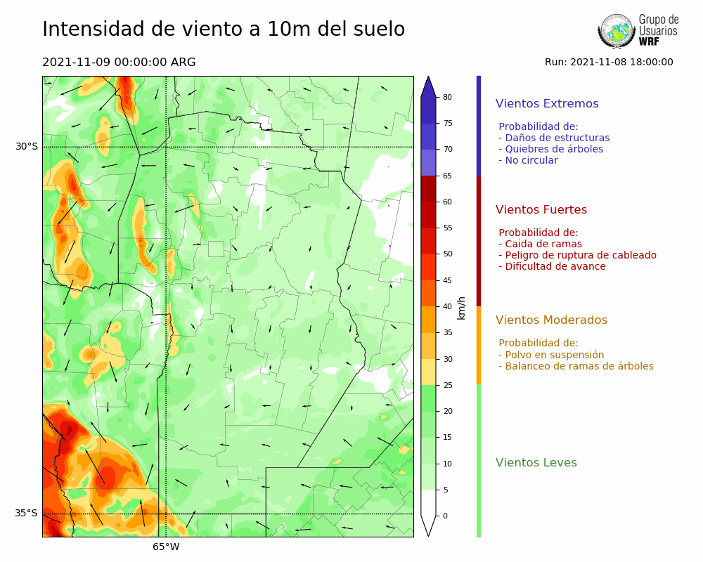 • Intensidad máxima: 18.44 km/h (09/11/2021 09hs.)
