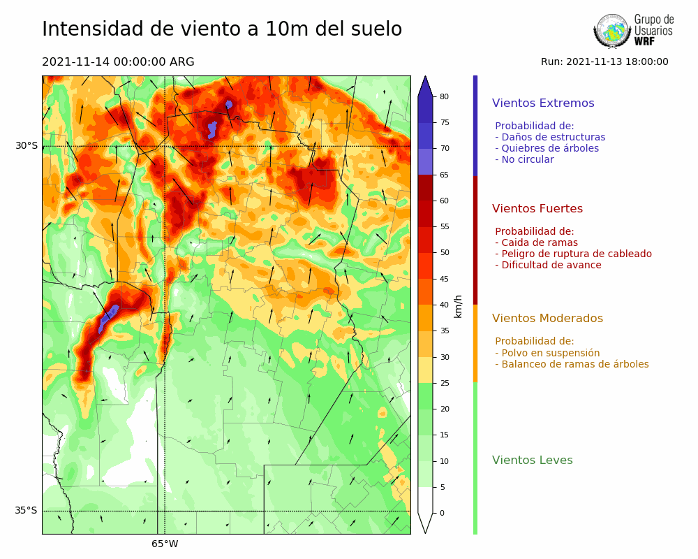 • Intensidad máxima: 16.94 km/h (15/11/2021 17hs.)