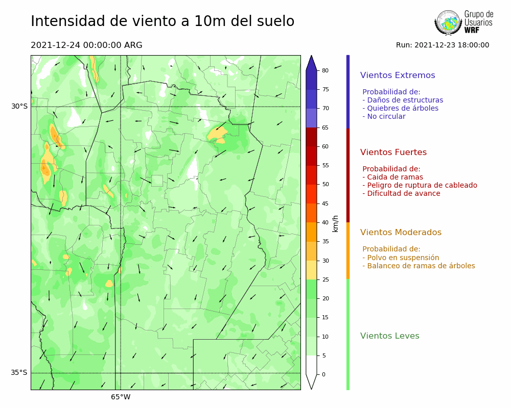 • Intensidad máxima: 9.69 km/h (25/12/2021 06hs.)