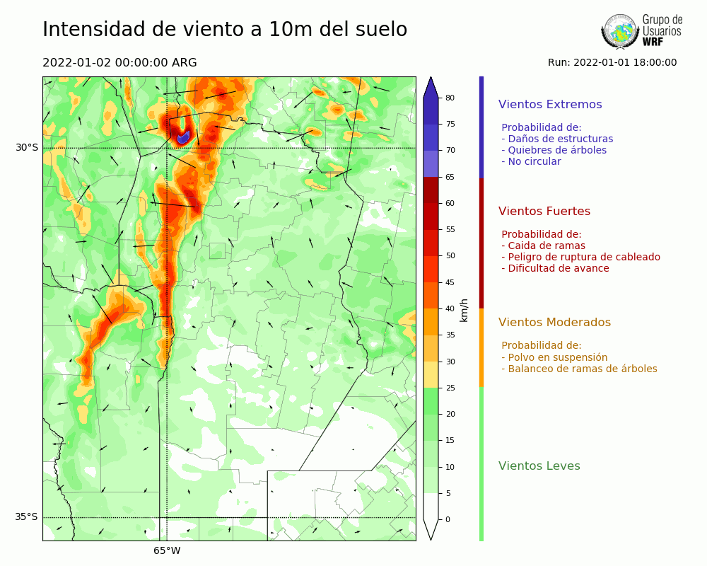 • Intensidad máxima: 5.67 km/h (03/01/2022 10hs.)