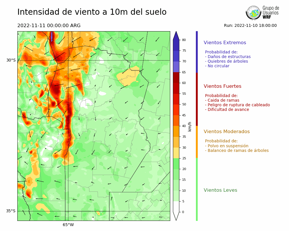 • Intensidad máxima: 25.98 km/h (11/11/2022 10hs.)