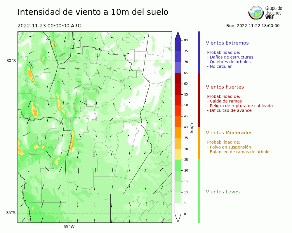 • Intensidad máxima: 11.50 km/h (25/11/2022 05hs.)