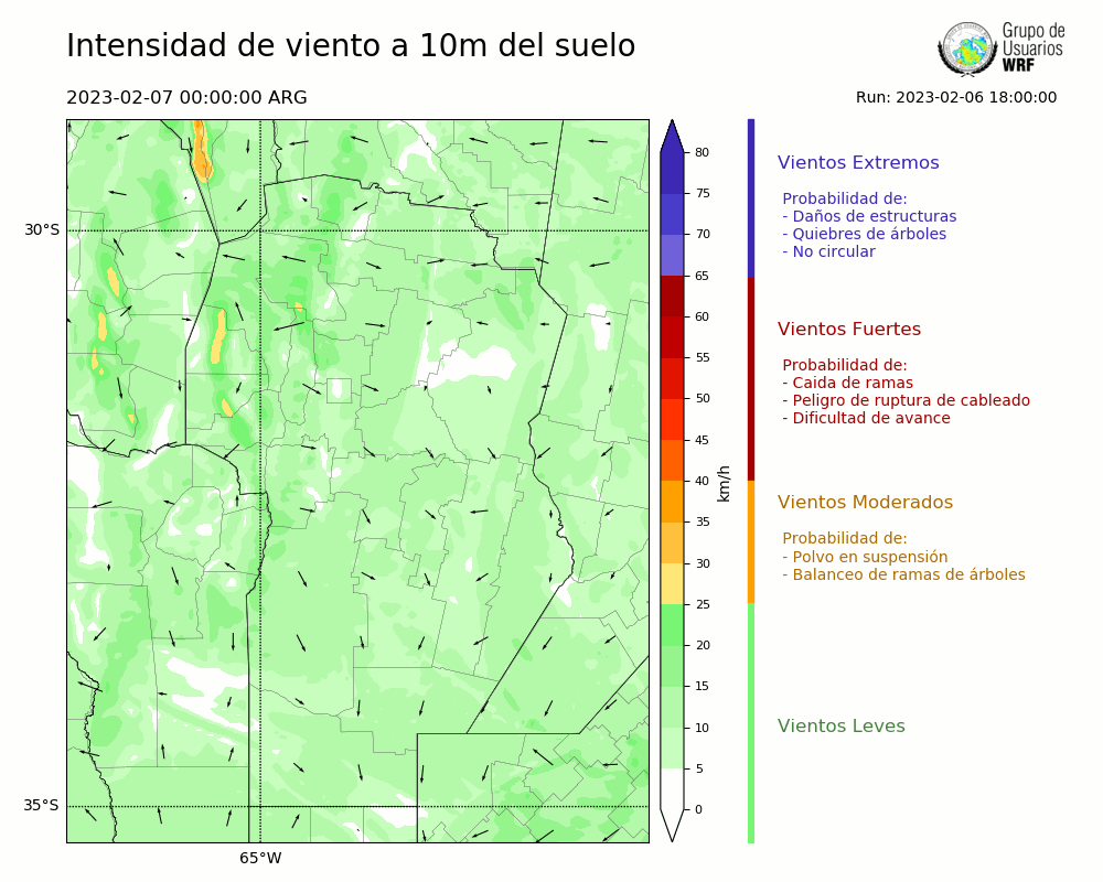 • Intensidad máxima: 12.39 km/h (07/02/2023 22hs.)