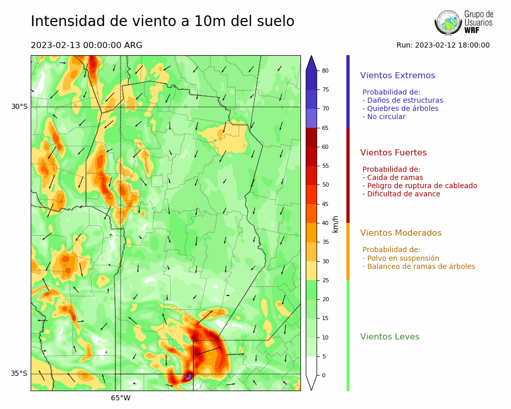 • Intensidad máxima: 30.13 km/h (13/02/2023 10hs.)