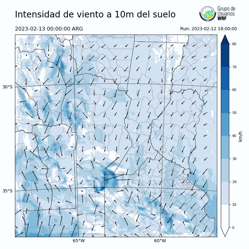 • Intensidad máxima: 11.38 km/h (13/02/2023 22hs.)