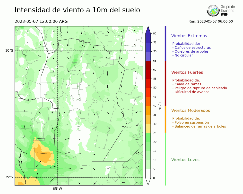 • Intensidad máxima: 11.68 km/h (07/05/2023 23hs.)
