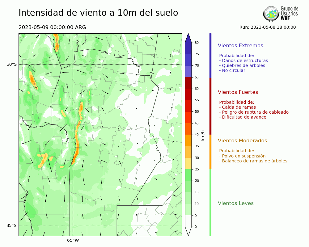 • Intensidad máxima: 12.79 km/h (09/05/2023 11hs.)