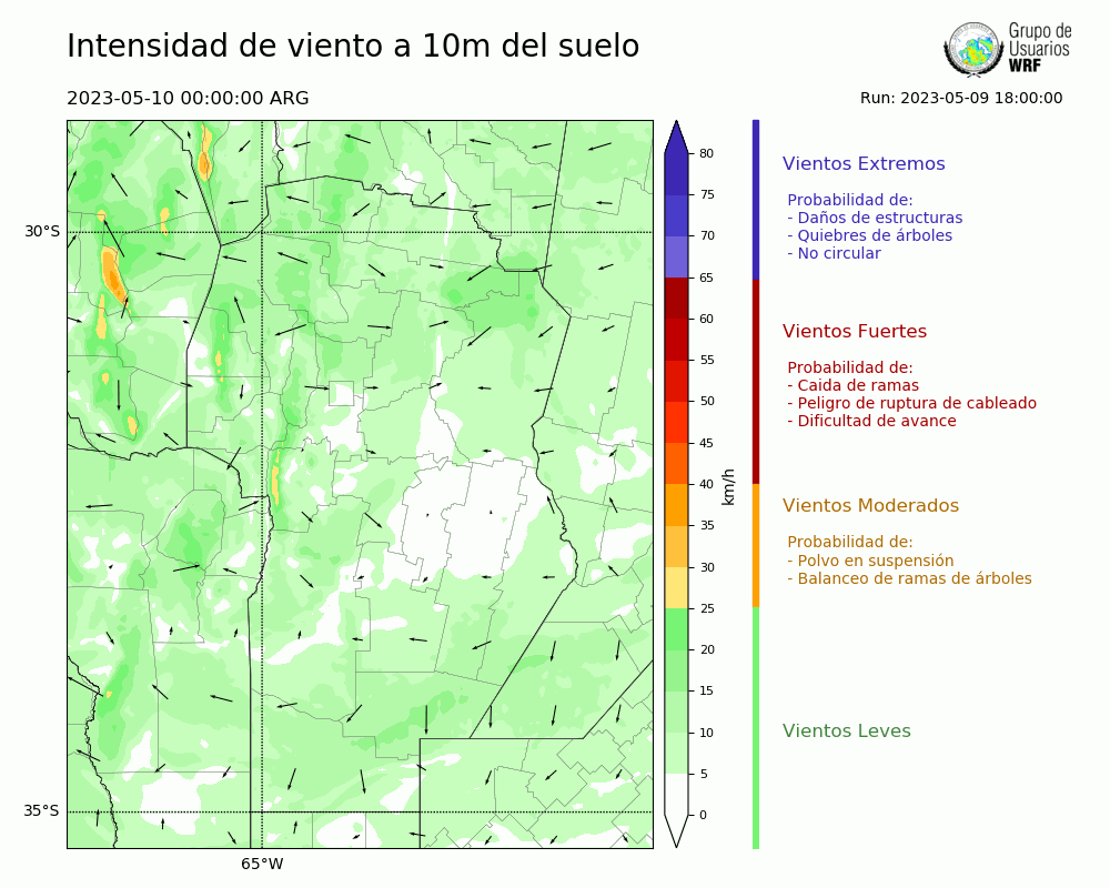 • Intensidad máxima: 10.90 km/h (10/05/2023 04hs.)