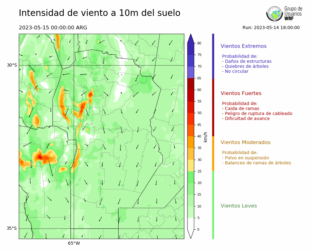 • Intensidad máxima: 19.98 km/h (15/05/2023 11hs.)