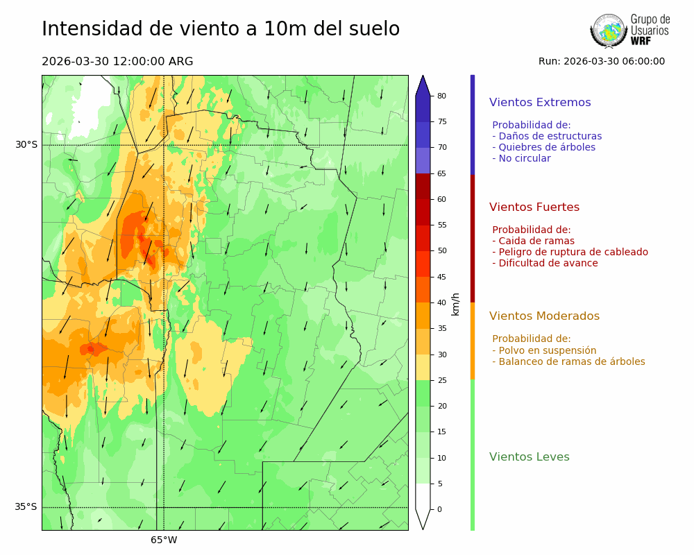 • Intensidad máxima: 16.13 km/h (30/03/2026 13hs.)