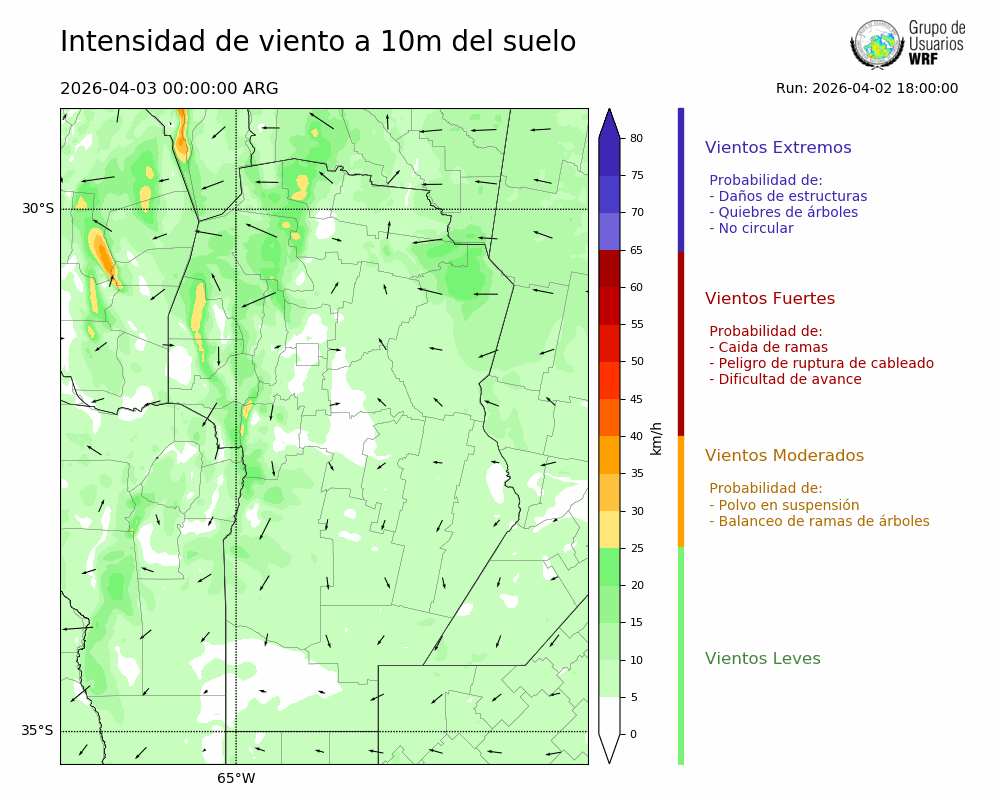 • Intensidad máxima: 12.19 km/h (03/04/2026 10hs.)