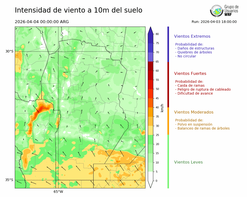 • Intensidad máxima: 26.45 km/h (04/04/2026 04hs.)