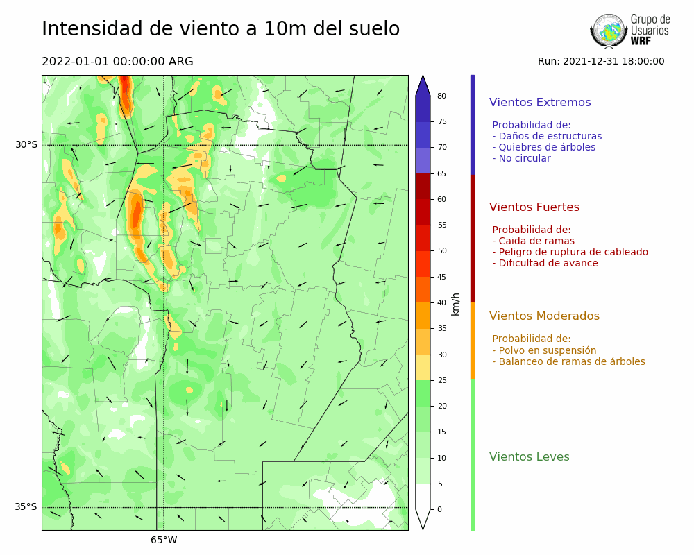 • Intensidad máxima: 12.68 km/h (01/01/2022 05hs.)