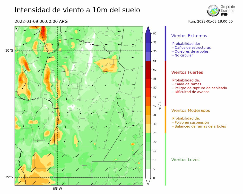• Intensidad máxima: 17.84 km/h (09/01/2022 07hs.)