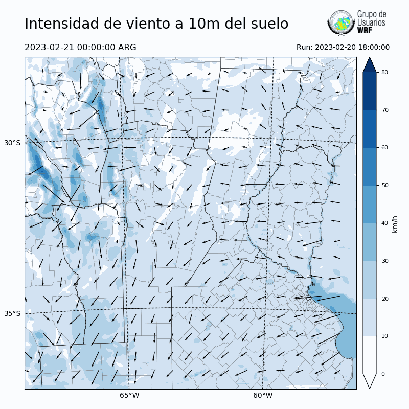 • Intensidad máxima: 15.19 km/h (21/02/2023 11hs.)