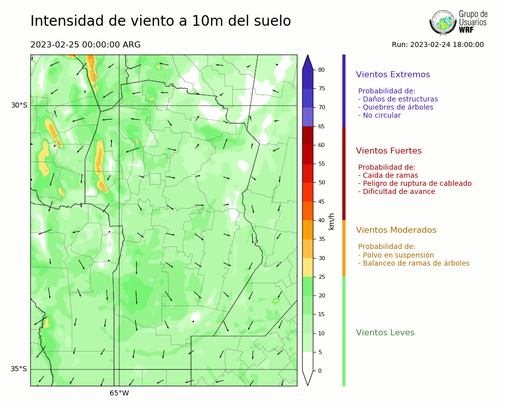 • Intensidad máxima: 7.40 km/h (25/02/2023 05hs.)