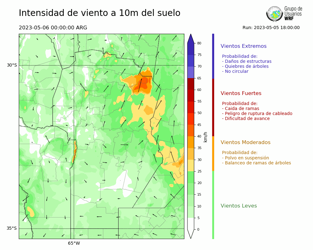 • Intensidad máxima: 24.04 km/h (06/05/2023 02hs.)