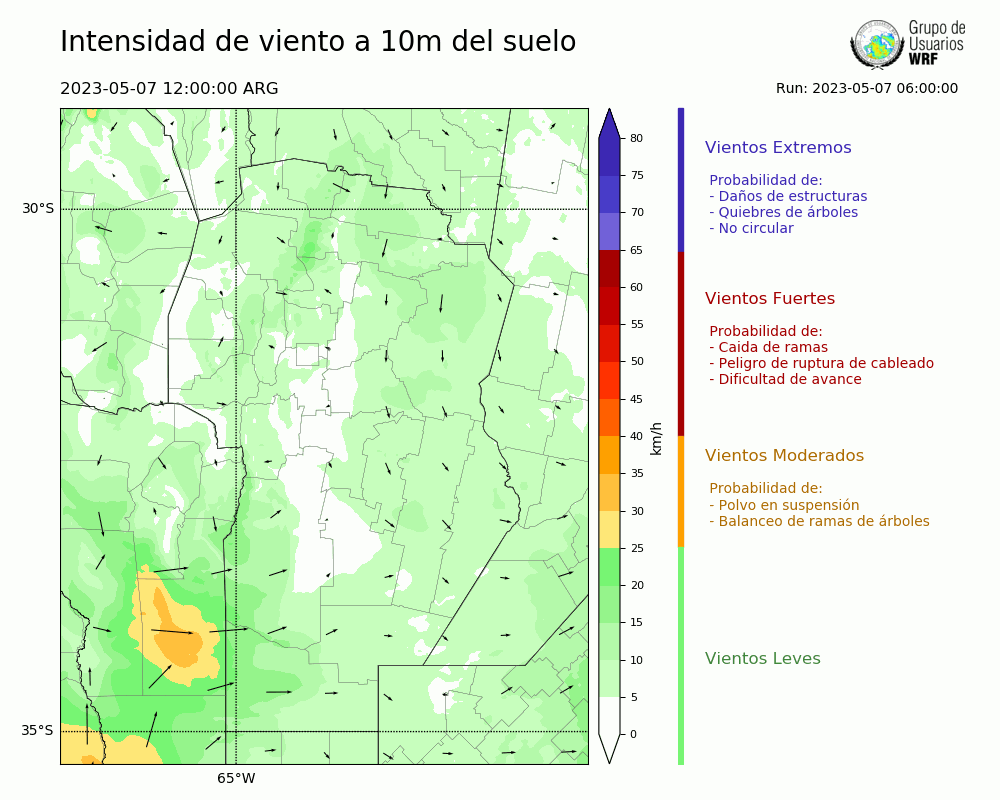 • Intensidad máxima: 12.98 km/h (07/05/2023 23hs.)