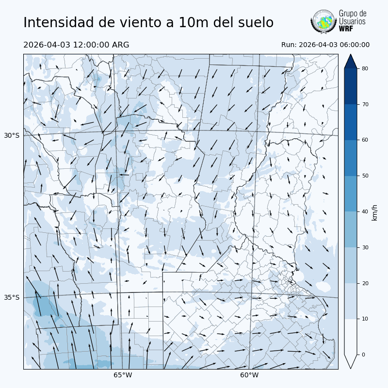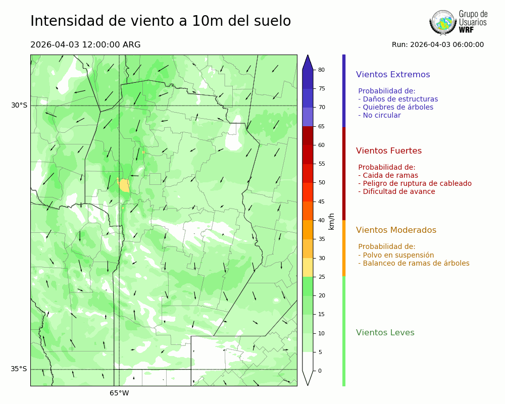 • Intensidad máxima: 3.40 km/h (03/04/2026 16hs.)