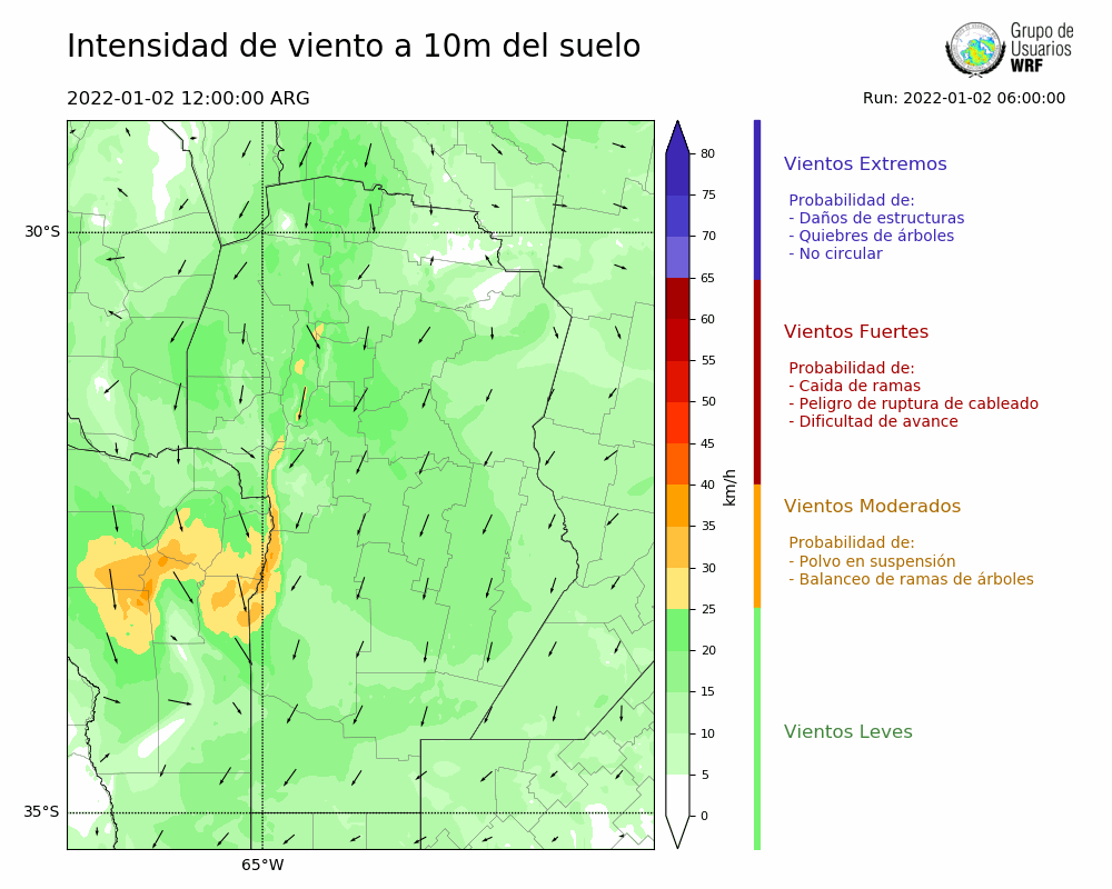 • Intensidad máxima: 0.48 km/h (03/01/2022 10hs.)