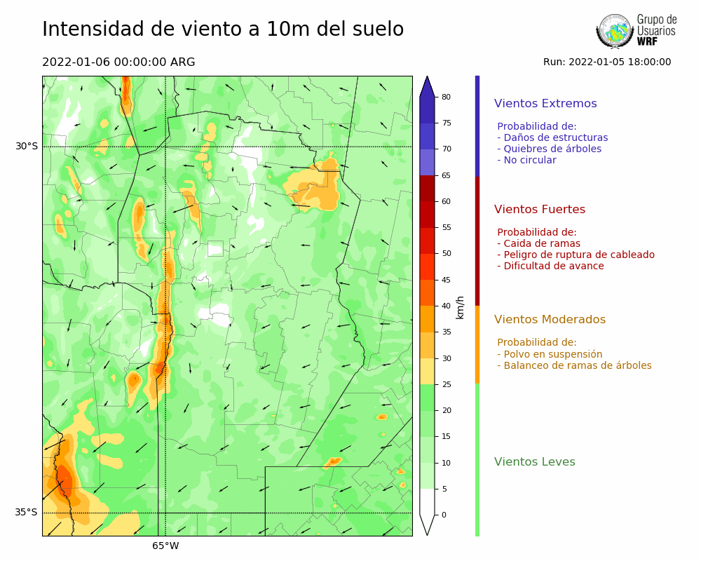 • Intensidad máxima: 20.64 km/h (06/01/2022 08hs.)