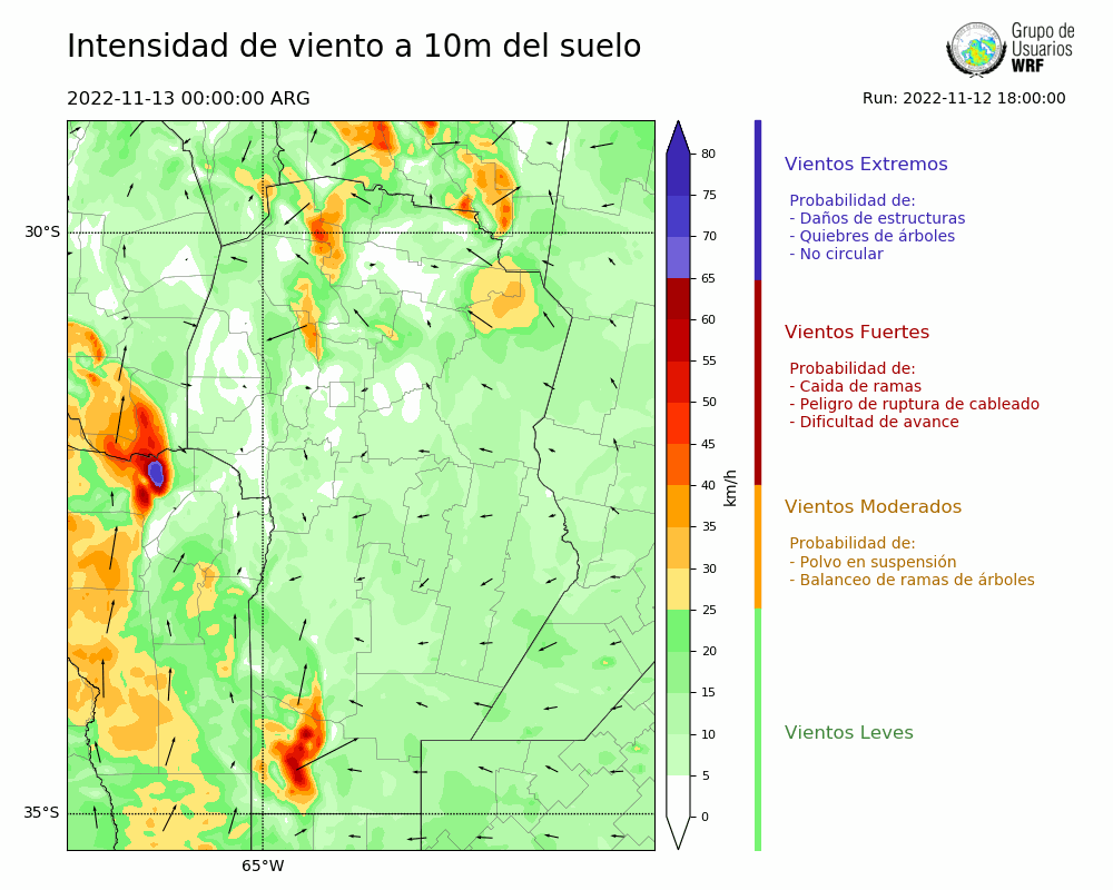• Intensidad máxima: 13.96 km/h (14/11/2022 02hs.)