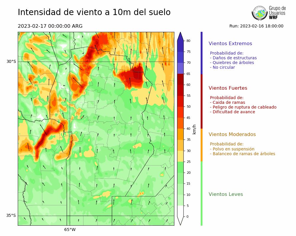• Intensidad máxima: 33.99 km/h (17/02/2023 11hs.)