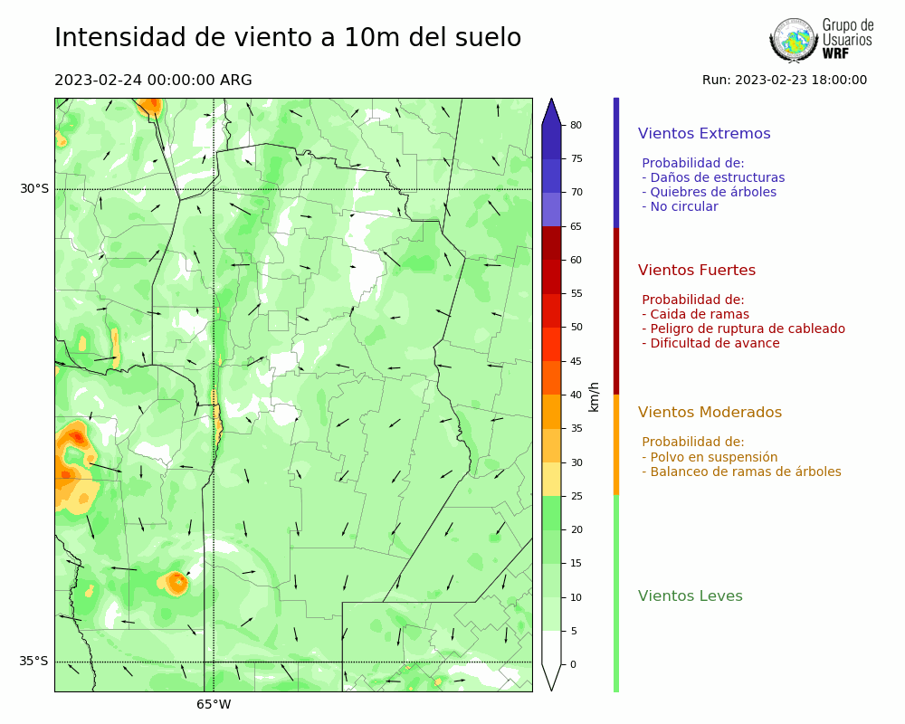 • Intensidad máxima: 4.63 km/h (24/02/2023 11hs.)