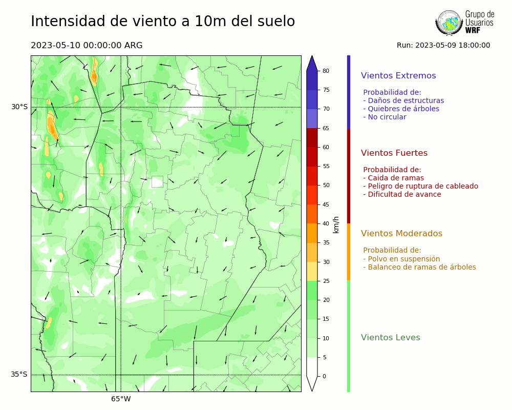 • Intensidad máxima: 13.05 km/h (12/05/2023 05hs.)