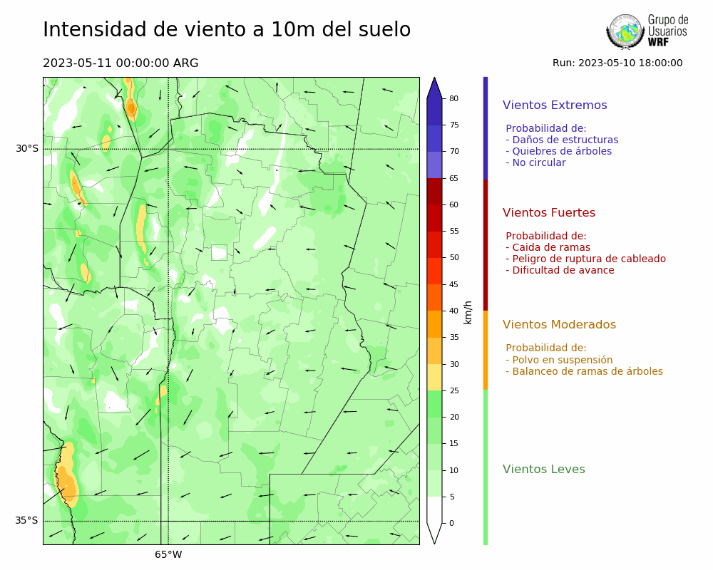 • Intensidad máxima: 14.38 km/h (12/05/2023 05hs.)