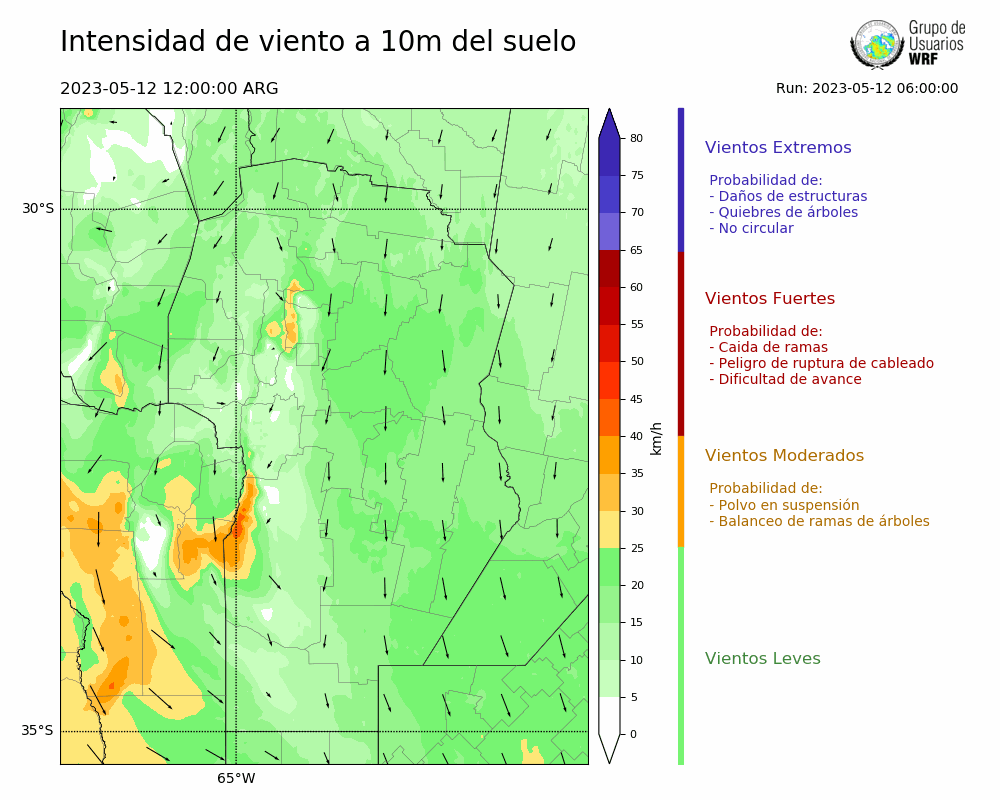• Intensidad máxima: 19.61 km/h (12/05/2023 16hs.)