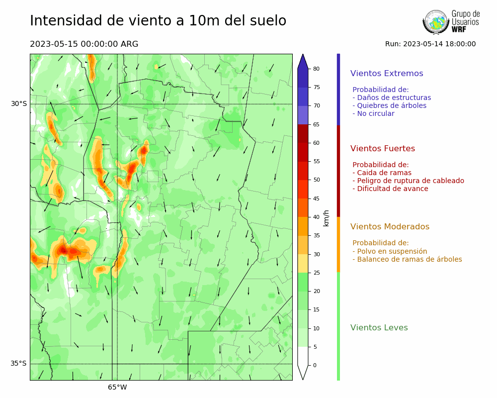 • Intensidad máxima: 17.90 km/h (15/05/2023 11hs.)