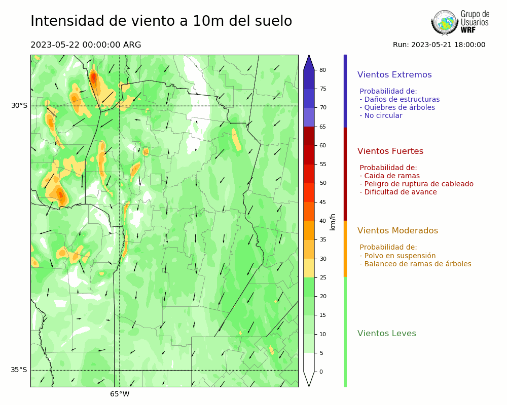 • Intensidad máxima: 21.75 km/h (22/05/2023 00hs.)