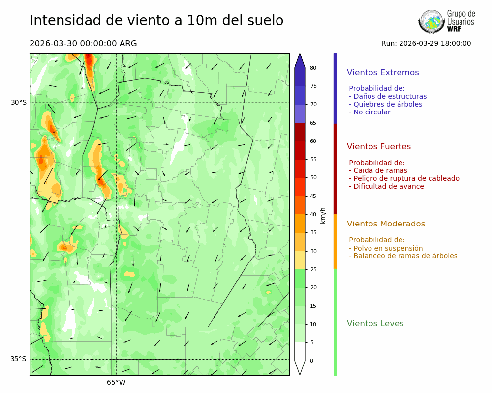 • Intensidad máxima: 14.35 km/h (30/03/2026 11hs.)
