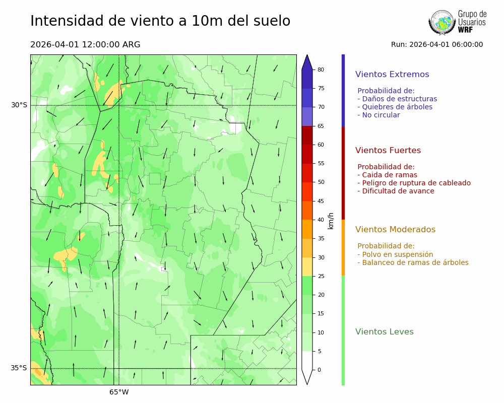 • Intensidad máxima: 14.91 km/h (01/04/2026 23hs.)