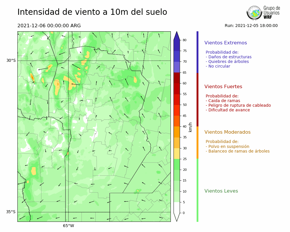 • Intensidad máxima: 16.15 km/h (06/12/2021 03hs.)