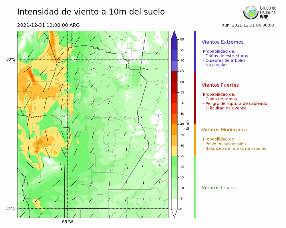 • Intensidad máxima: 12.94 km/h (31/12/2021 22hs.)