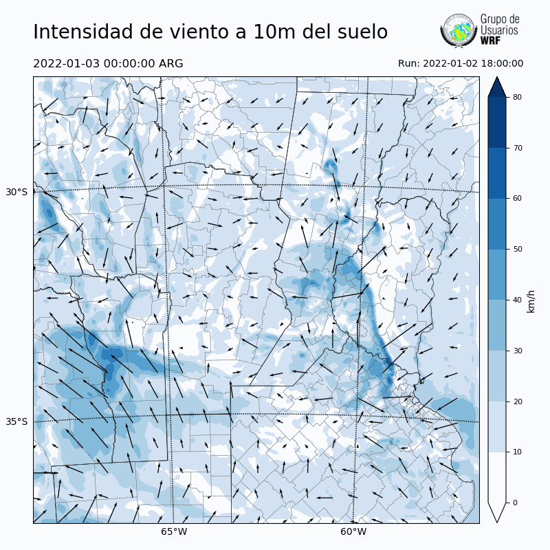 • Intensidad máxima: 18.55 km/h (03/01/2022 02hs.)