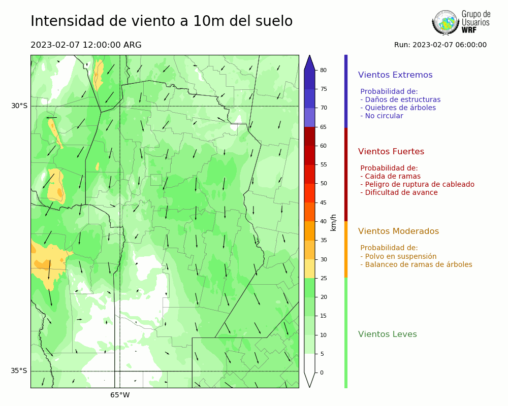 • Intensidad máxima: 12.83 km/h (09/02/2023 04hs.)