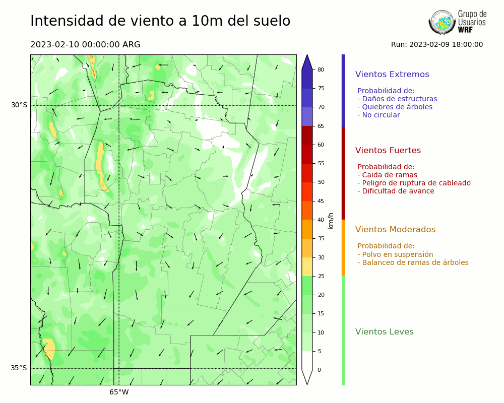 • Intensidad máxima: 12.13 km/h (10/02/2023 00hs.)
