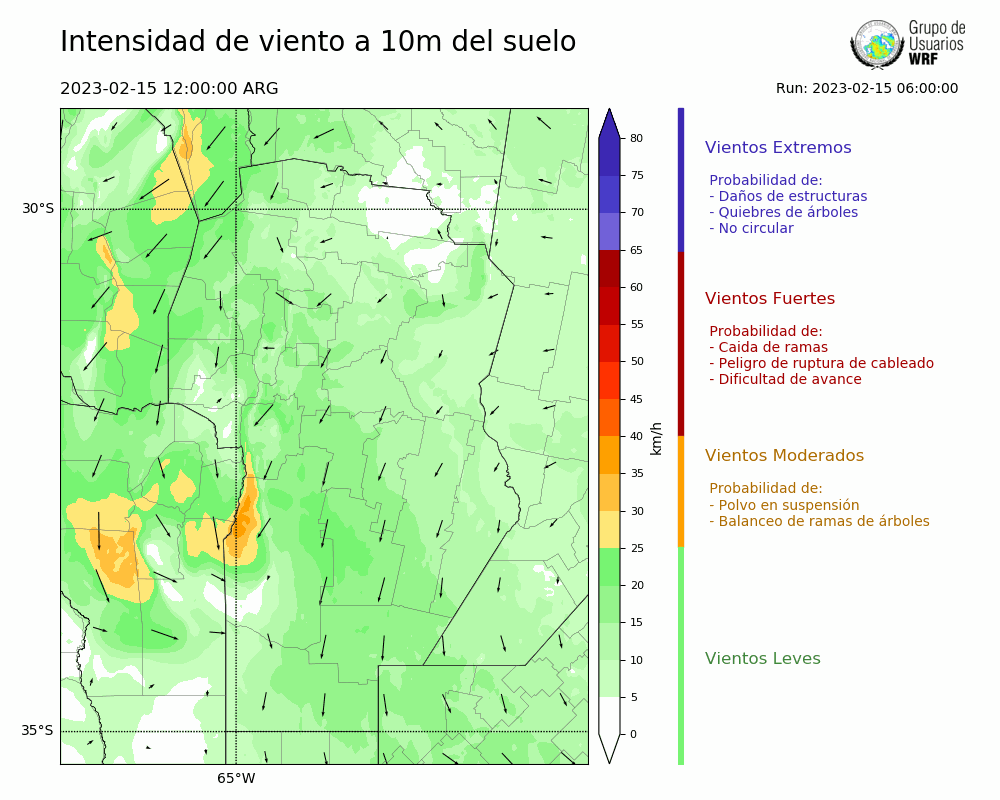• Intensidad máxima: 12.76 km/h (15/02/2023 22hs.)