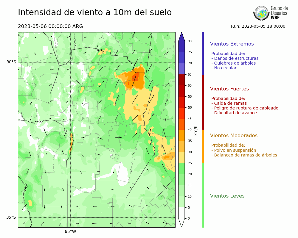 • Intensidad máxima: 25.42 km/h (06/05/2023 03hs.)