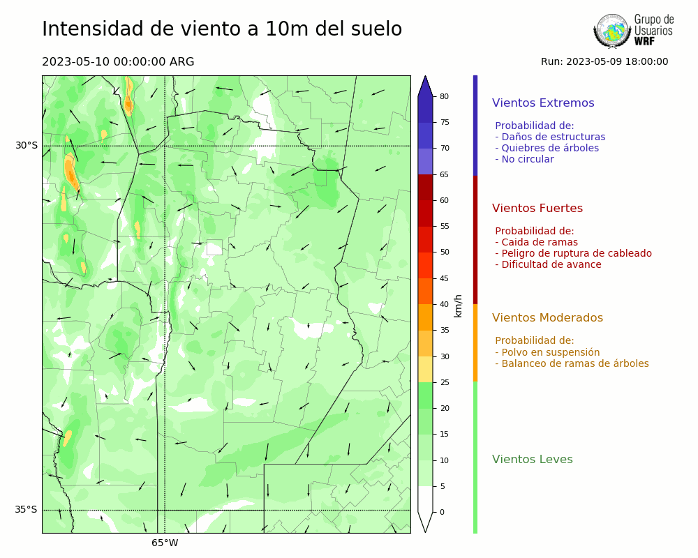 • Intensidad máxima: 11.63 km/h (10/05/2023 05hs.)