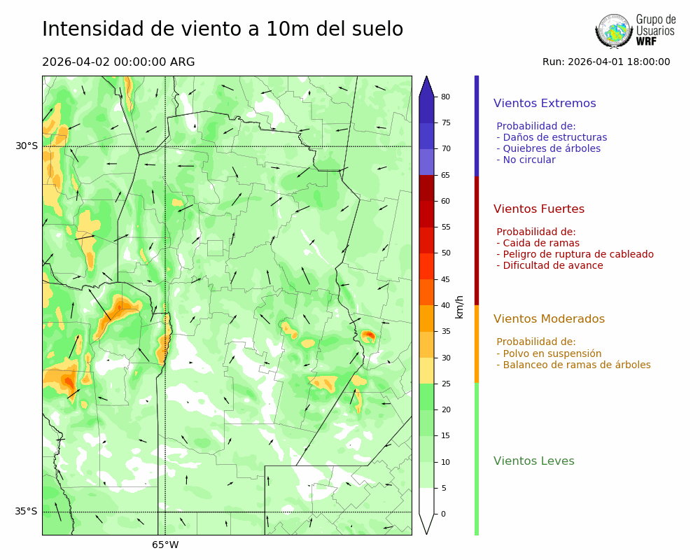 • Intensidad máxima: 31.79 km/h (02/04/2026 10hs.)