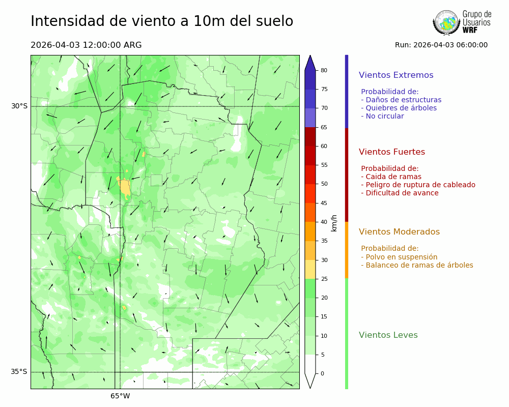 • Intensidad máxima: 17.29 km/h (03/04/2026 22hs.)