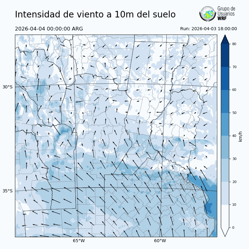 • Intensidad máxima: 15.35 km/h (04/04/2026 02hs.)