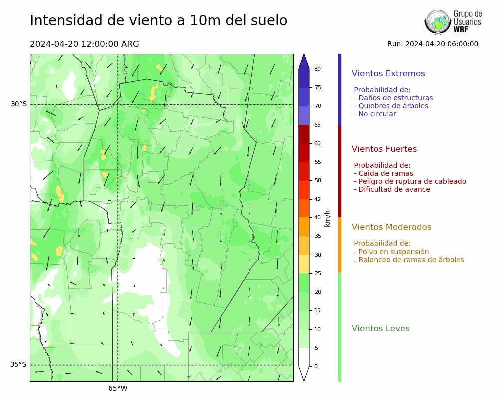 • Intensidad máxima: 18.55 km/h (22/04/2024 20hs.)